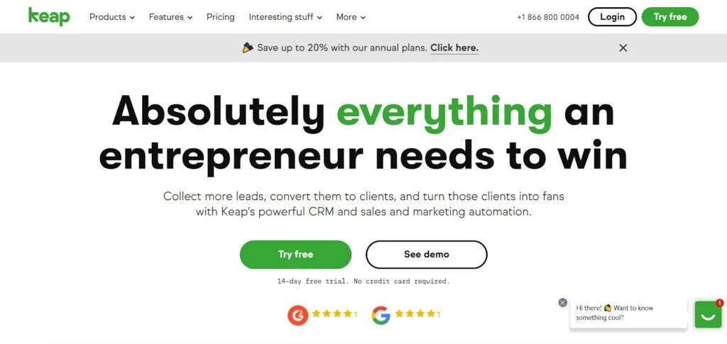 Don’t mistake Keap for a standard CRM, it’s an email marketing suite that also features appointment booking, and pipeline management. This suite lets you convert leads via an advanced marketing campaign, and cuts time via workflow automation as well as easy payment integration.